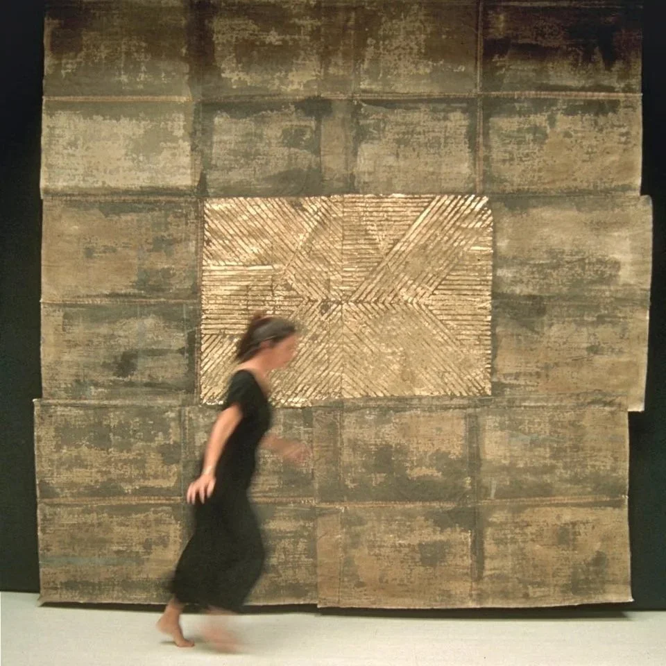 This collection of 6’ x 6’ artworks explores quiet symmetry, the invisible axis from which life unfolds, using handmade washi paper, artist-made block printing, paint, dye, and metallic leafing.