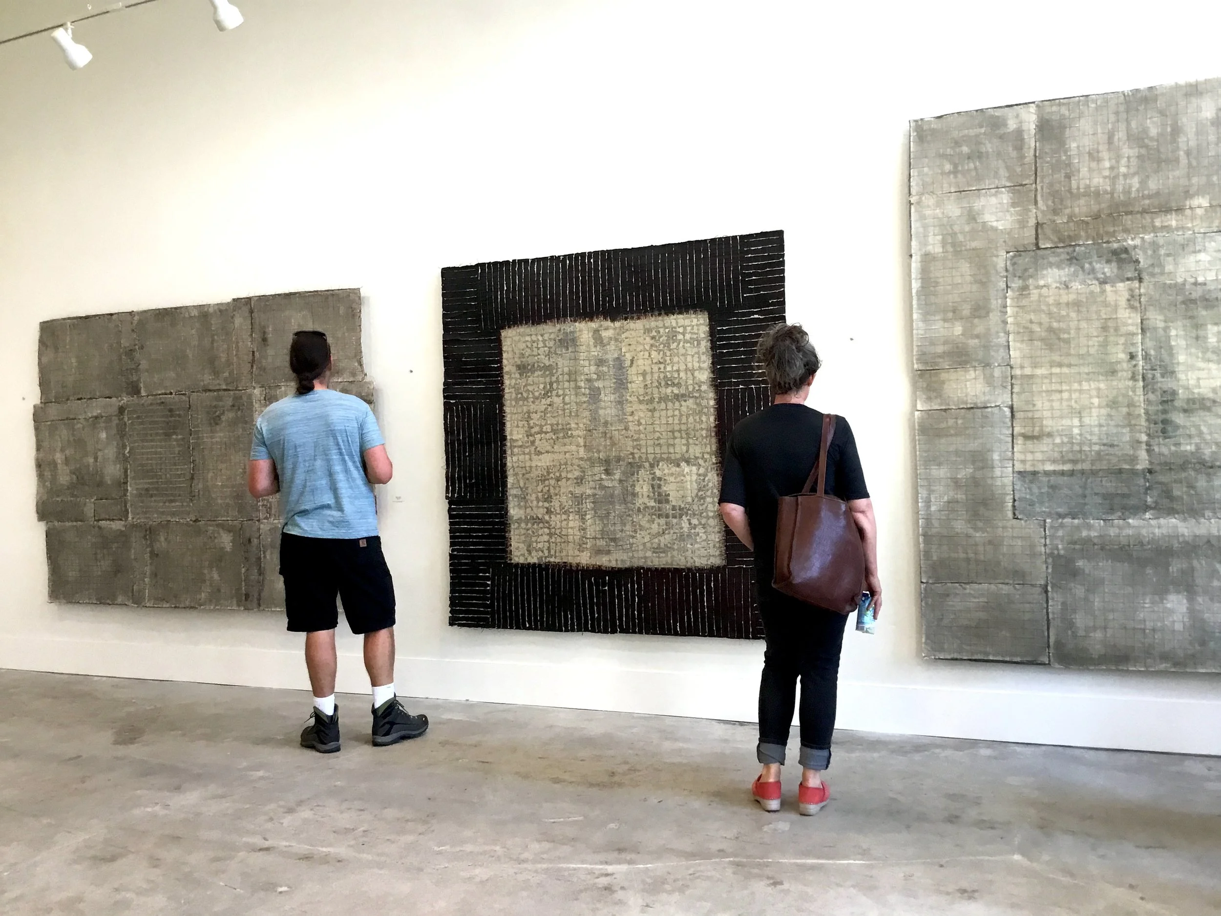 Susan Singleton, Hannah Alex-Glasser, and Kandis Susol exhibited in the group show, Substrate: Underlying Currents, for the Nichols Gallery at the San Juan Islands Museum of Art. The artists’ close association, cultural influences, and overlapping philosophies brought a beautiful harmony to the exhibit, creating a quiet but powerful dialogue with their nearly monochromatic schema, drawing the viewer in, layer after layer, into the complexities of their stunning pieces of work.